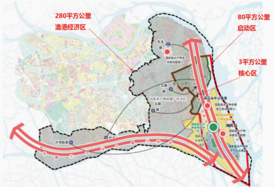 番禺国家级沿海渔港经济区总体布局图。